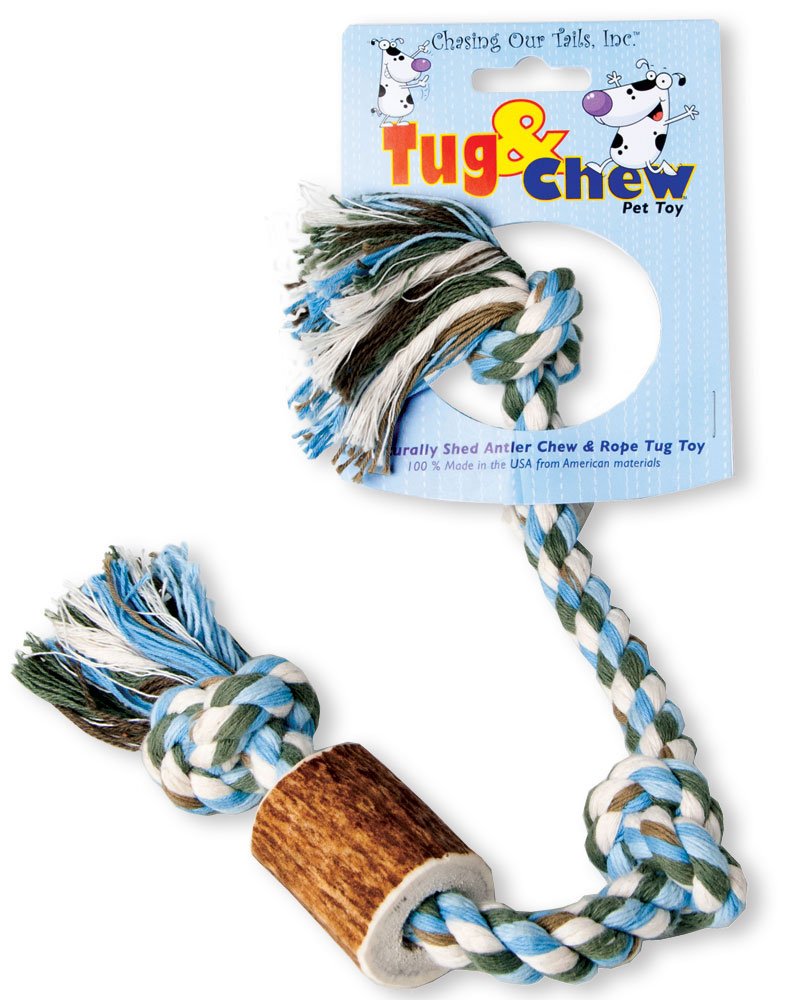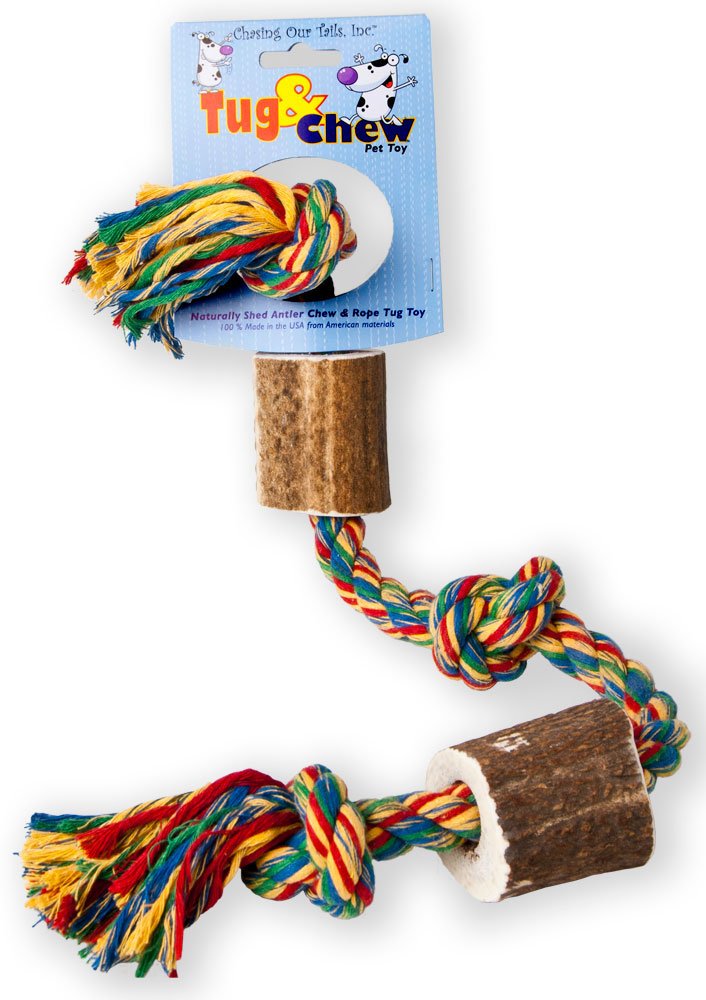 7. Rope Toys (with antler pieces) - Great for tugging, tossing, and chewing. If you have a teething puppy, soak it in a little bit of water, throw it in the freezer and you now have a teething chew.